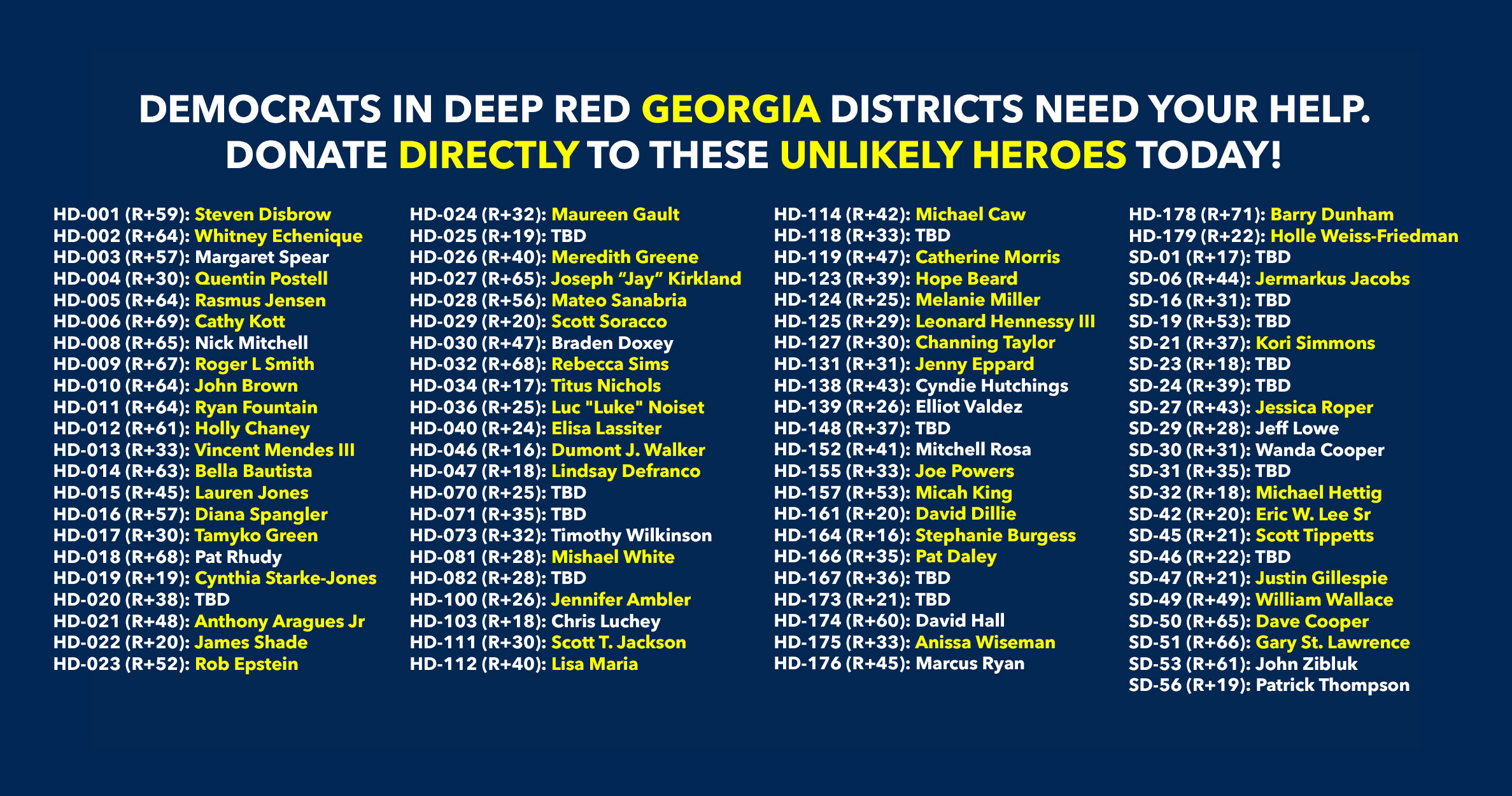 Donate to Democratic candidates running in competitive districts to keep & flip as many seats blue as possible!