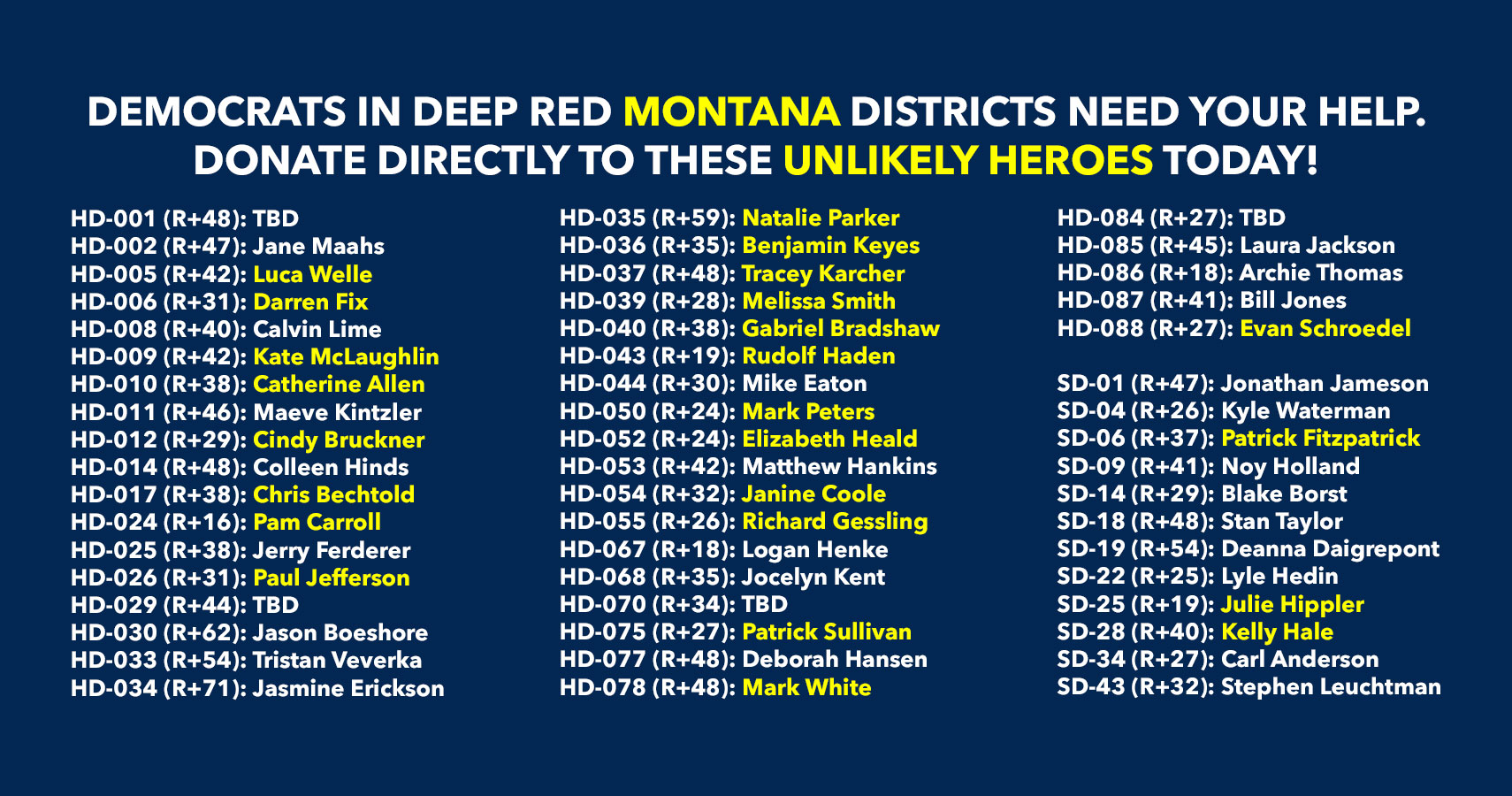 Donate to Democratic candidates running in competitive districts to keep & flip as many seats blue as possible!
