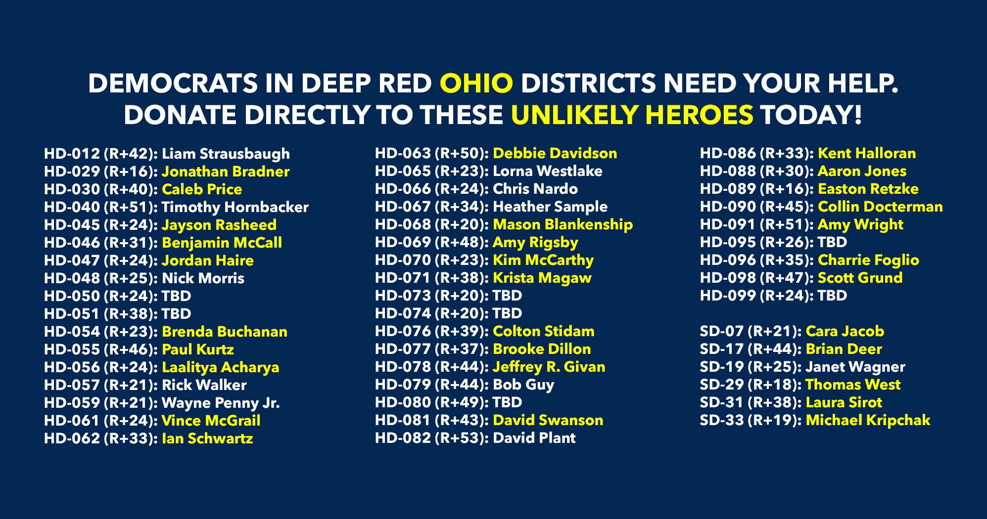 Donate to Democratic candidates running in competitive districts to keep & flip as many seats blue as possible!